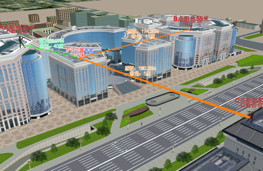 通過平臺提供的三維空間分析功能,如通視分析、距離測量、剖面分析等工具,可以協(xié)助警察制定警力布控方案。