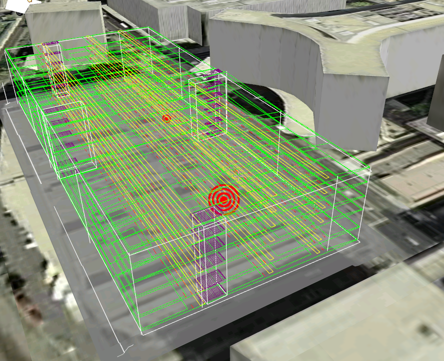 通過實(shí)時(shí)調(diào)取攝像頭信息和建筑物CAD信息,可以對(duì)室內(nèi)突發(fā)事件進(jìn)行有效監(jiān)控管理。